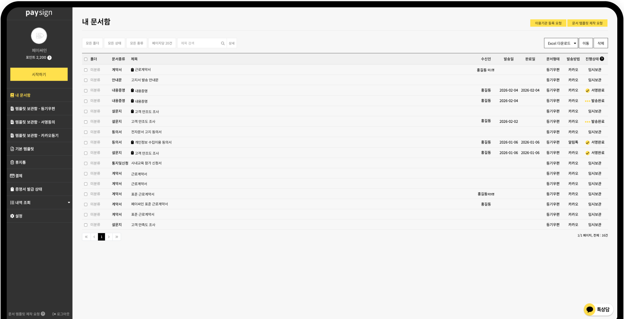 문서를 발송하고 수신자가 받은 기록, 서명한 기록 등